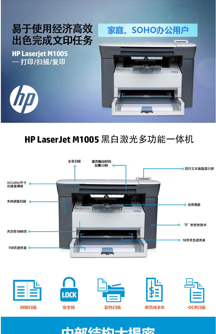 惠普(HP) M1005 黑白激光打印機(jī)多功能一體機(jī)